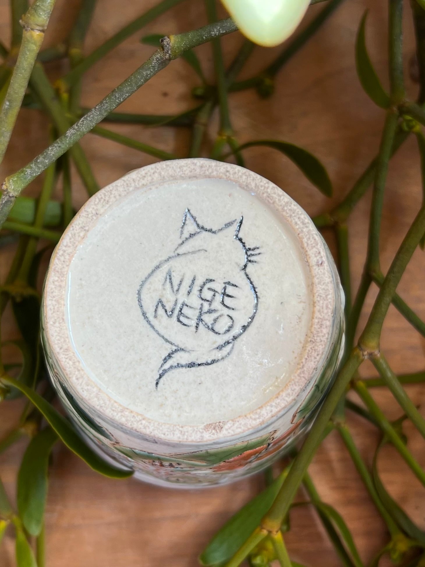 ポップな絵柄と古風な貫入の入った素地の